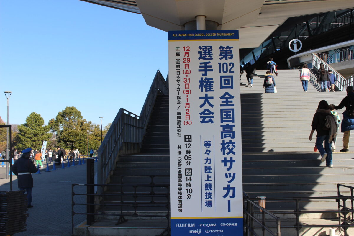 12月31日(日)、第102回高校サッカー選手権大会の2回戦で茨城県代表の明秀学園日立高校と対戦しました。前半12分に先制点をあげ、その後硬い守備で相手にペースを渡しませんでしたが、終盤にCKから同点に追いつかれ、1ー1のままPK戦へもつれ込みました。残念ながらPK戦での敗戦となりましたが、今夏のインターハイを制した“夏の王者”を追い詰め、選手たちは精一杯戦いました。たくさんの応援をどうもありがとうございました。