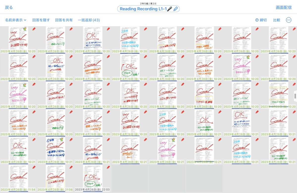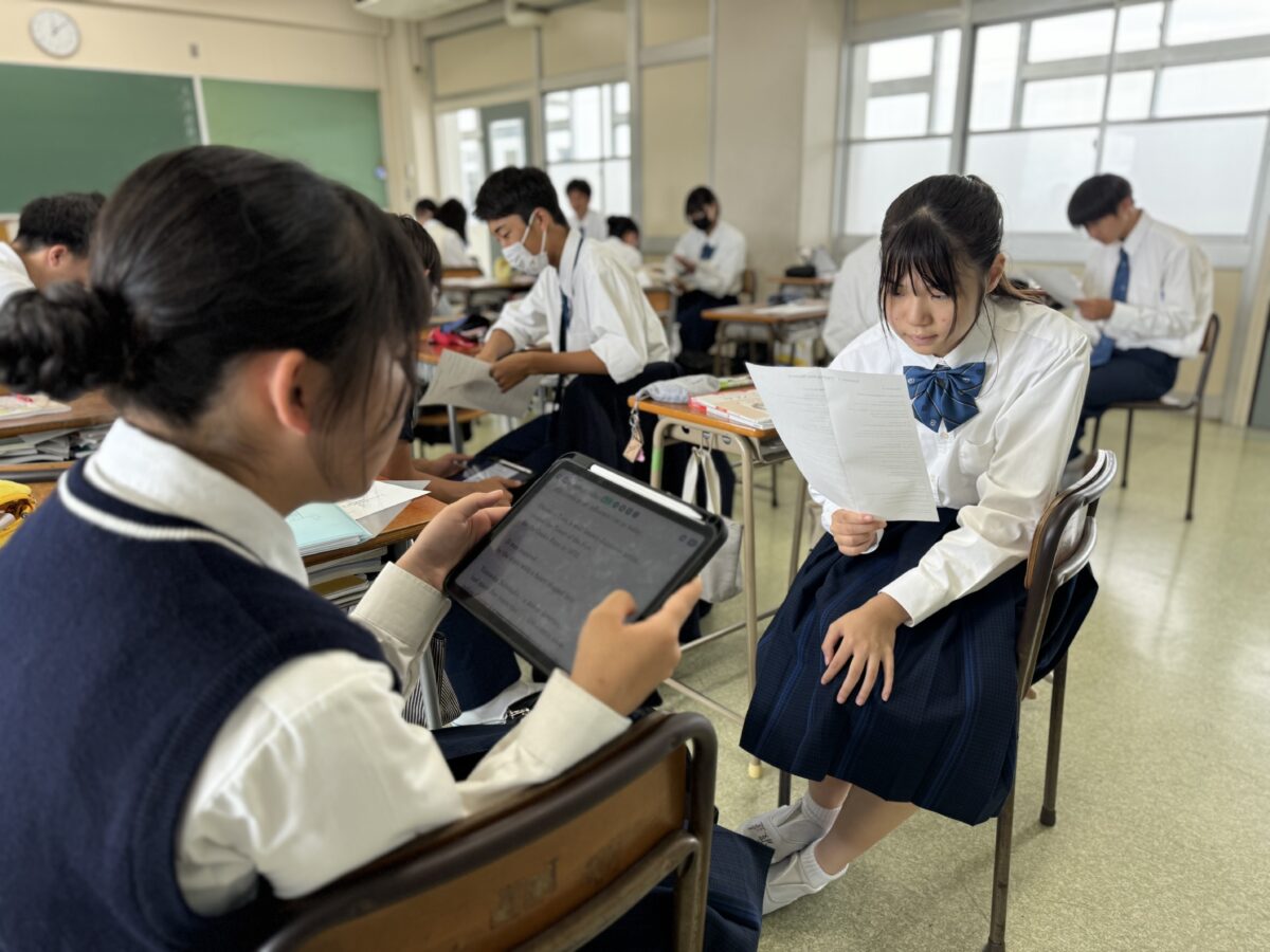 回答を比較し誤答・正答を発見し学びあいます - 教員が添削し生徒一人ひとりに返却しています