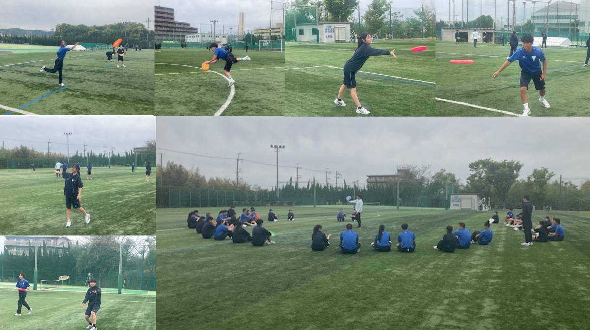 写真は,本日5限に行われた3年6組「生涯スポーツ」の授業の様子です。今日はフライングディスクのパスの基本動作を練習していました。今後は「ディスクゴルフ」,さらには「アルティメット」へと発展させながら,年齢や性別,体力にあまり左右されず,誰もが楽しめるスポーツのありかたについて学んでいく予定です。