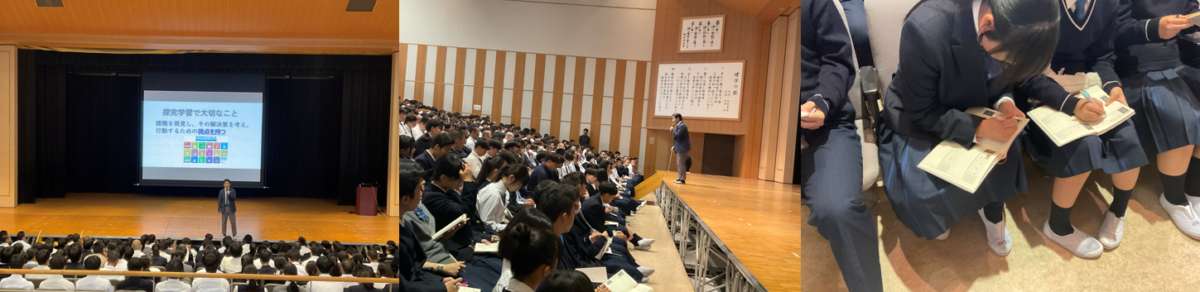 本日1限,高校1年生を対象に「高校現代文明論 校長講話」を行い,続く2限には,東海大学教養学部人間環境学科の岩本泰(いわもと・ゆたか)教授をお招きし,SDGs講演会を実施しました。講話・講演の具体的な内容については,ぜひ仰星日記をご覧ください。