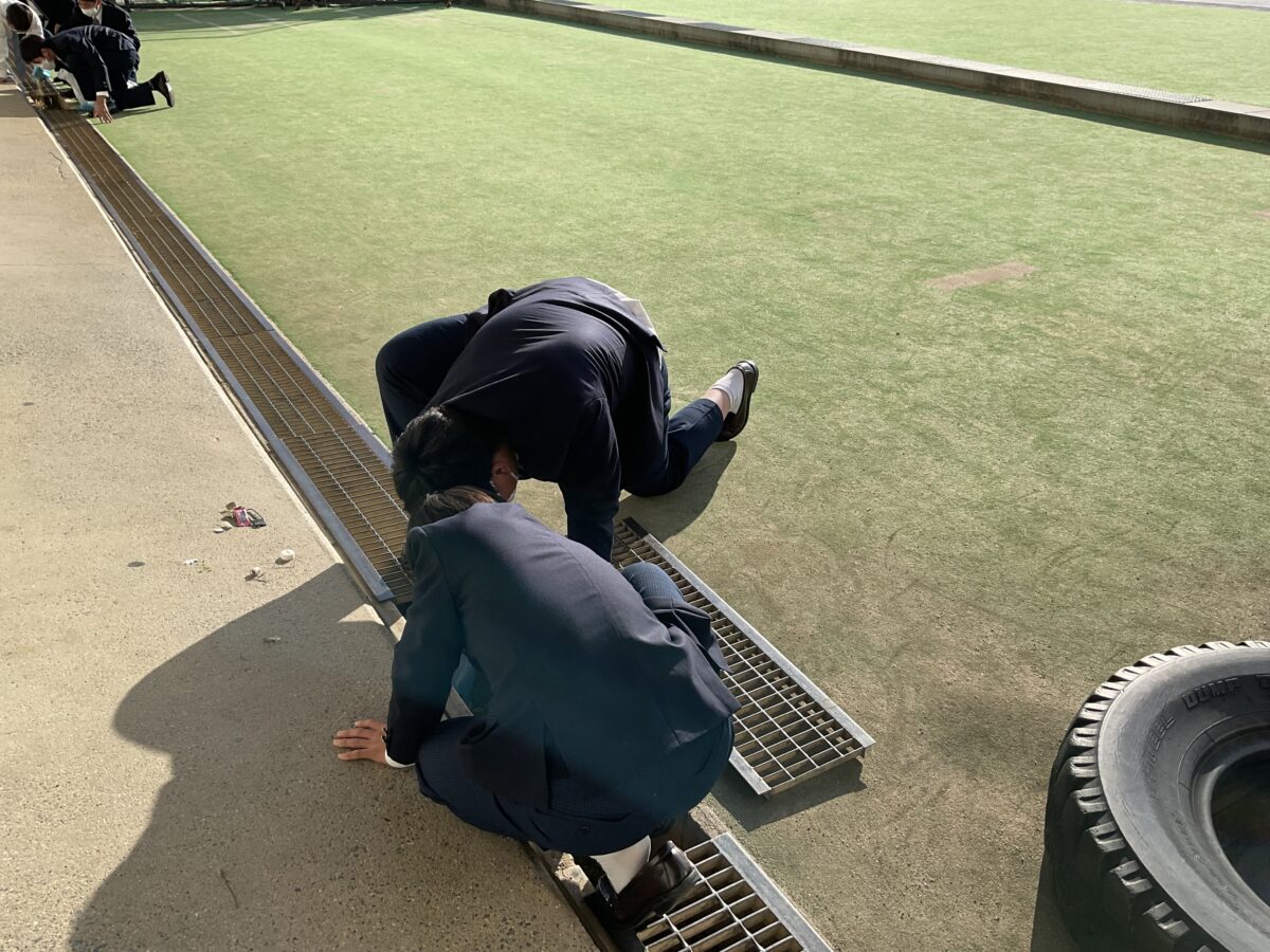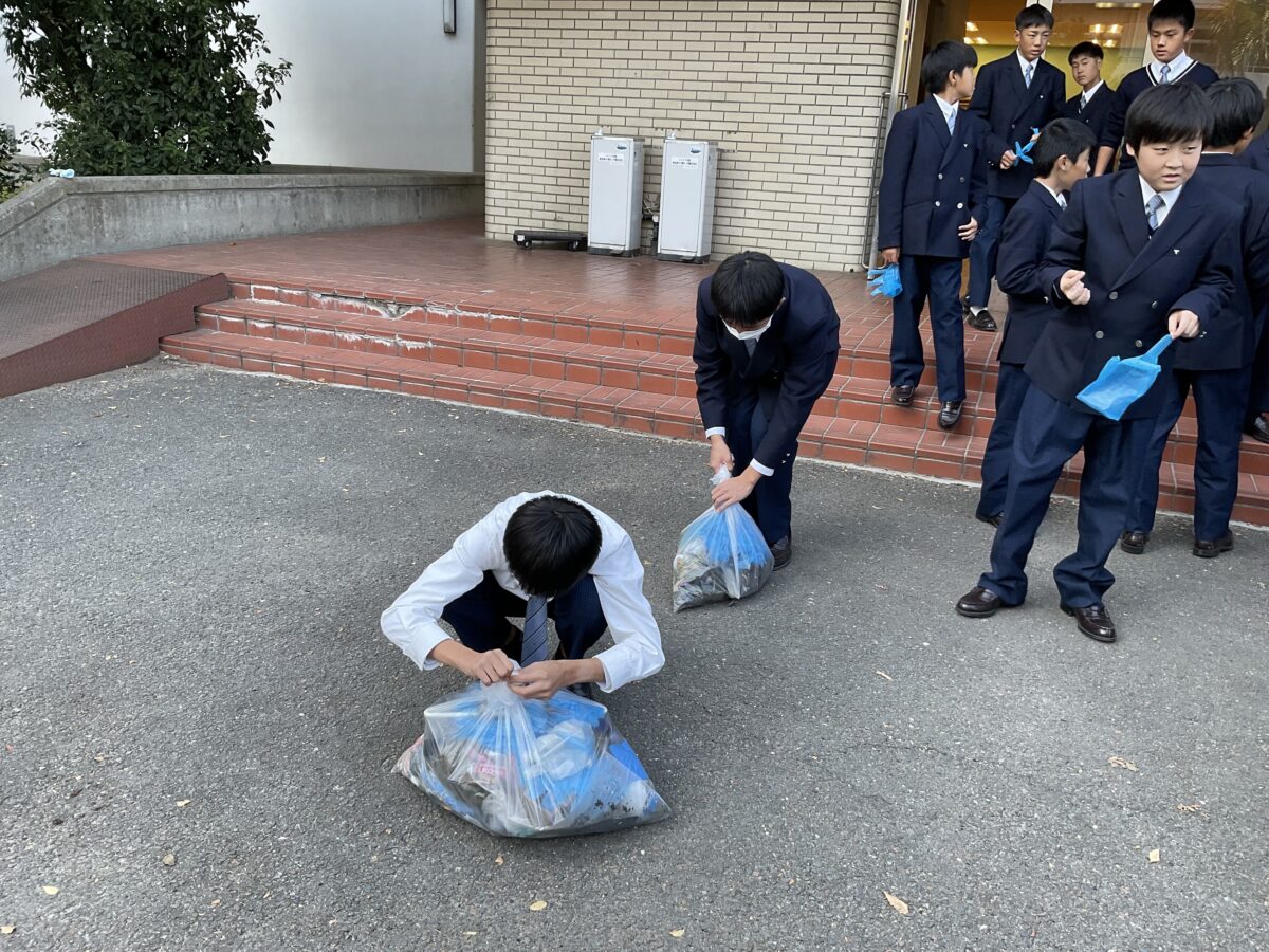 中学1年生は校内の清掃です。正門付近やグラウンドなど、校内のあらゆる場所のゴミを拾うことで、仰星をきれいにすることができました。