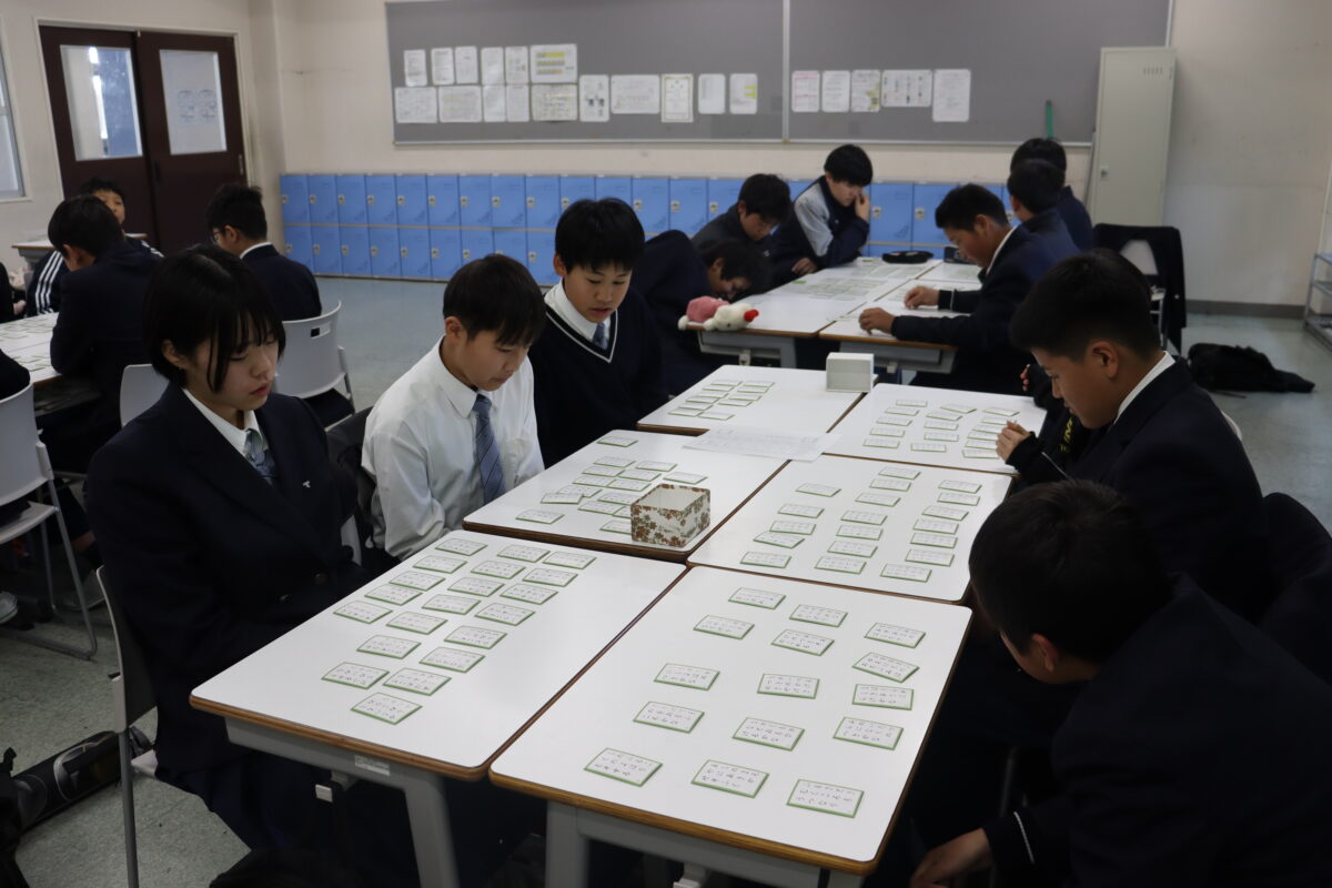 今日は1月19日(月)に実施予定の「百人一首大会」に向けて力試しを行なうクラスや暗記テストに向けてプレテストをするクラスがありました。