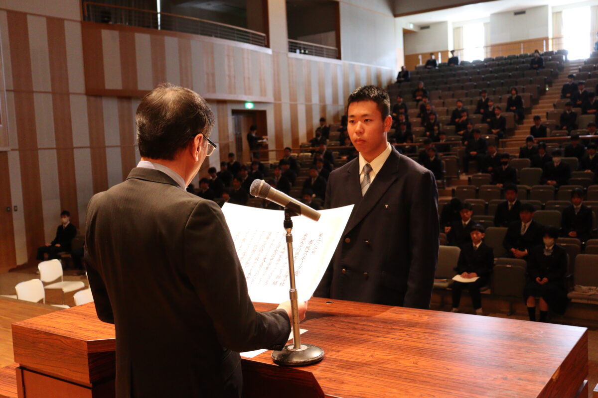 校長からは、「この3年生は学業面でも一生懸命取り組み、しっかりと成果を残してきた学年であり、後輩たちにとって模範となる存在でした」とのお話がありました。3年間の歩みを振り返るとともに、後輩たちにとっても大きな励みとなる時間となりました。