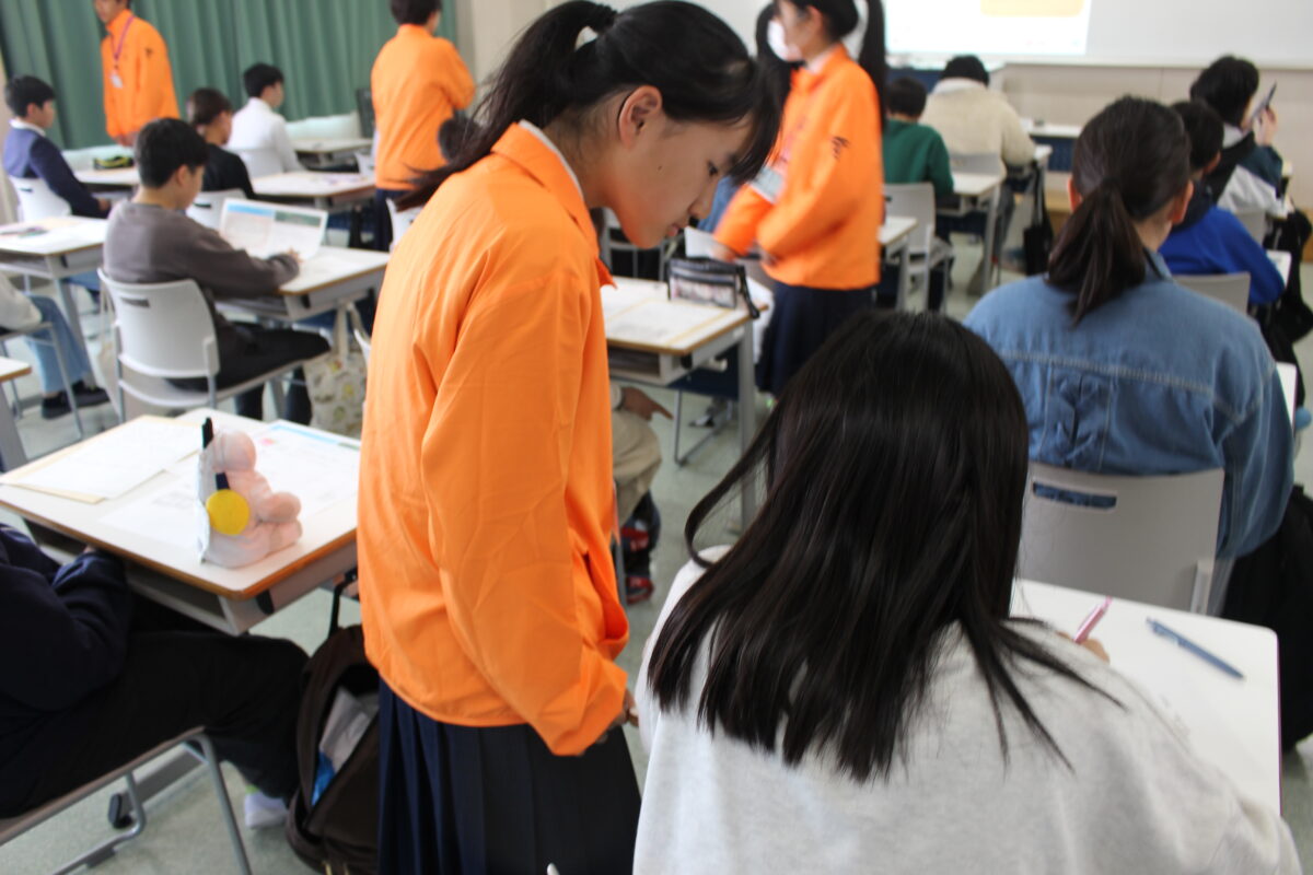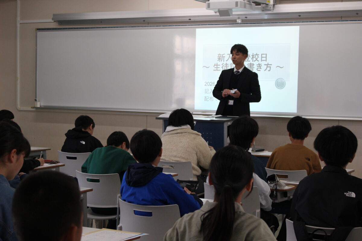 その後はホームルーム教室へ移動し、一人ひとりが自己紹介を行ったほか、生徒証の記入や提出書類の回収などを進めました。少し緊張した様子も見られましたが、新しい仲間との出会いに期待をふくらませている様子が伝わってきました。