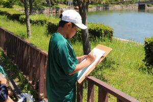 ▼2年生 西の丸庭園で写生を行いました。