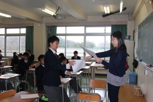 学年末試験の結果を特別時間割に基づき、答案返却・解説を行いました。生徒はわからないところなどを積極的に質問をしていました。成績が振るわなかった生徒には、各教科で補習授業が行われますが、その前に各自でテストのやり直しをして、何がわからないのかを整理しておいてくださいね。