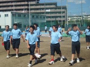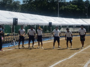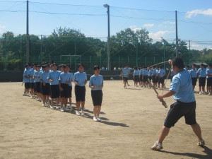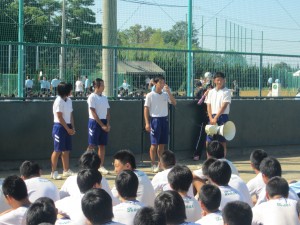 開会式のリハーサル終了後、中等部は野球場に移動して各種目の説明
