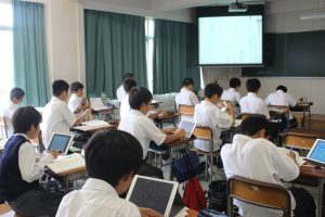 iPadを使って問題を考えている授業や、黒板に答えを書き出して