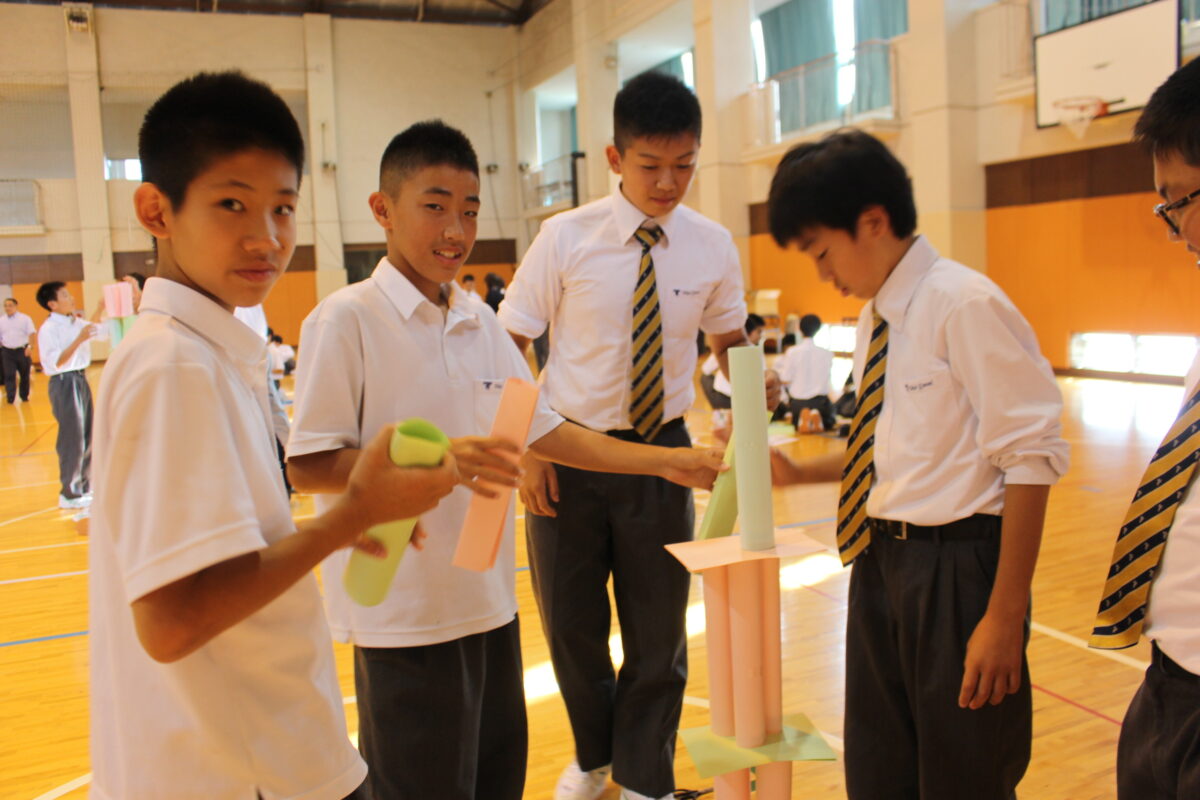 高いタワーやデザイン重視のタワーなど個性豊かなタワーが完成しました。3年生が作成した170cmのタワーが優勝で、2位は1年生のタワー!