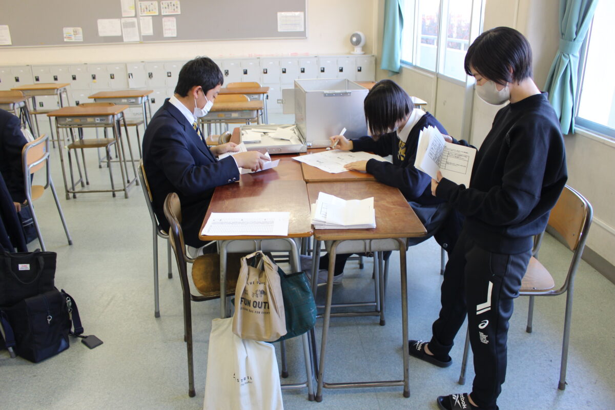 ▼ 開票作業は生徒会役員と各クラスの代議委員で行いました。みなさん、お疲れ様です!
