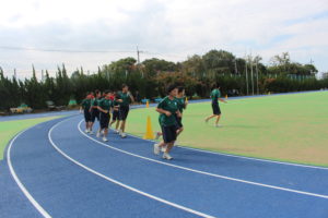 早朝から雨のち曇りで怪しかった空もすっかり晴れて、3時間目の間、外で持久走の練習が行われました。