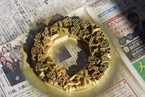 【 クリスマスリースの仕上げの様子 】