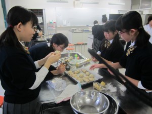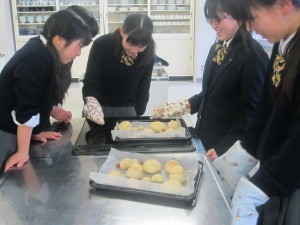今日は2年C組の家庭科の授業の様子をお伝えします。どれもかわいらしくて、とっても美味しそうなパンが出来上がりました!メロンパンの作り方もバッチリ覚えたようです。それにしても焼きたてのパンは最高ですね! みんなでおいしくいただきました!