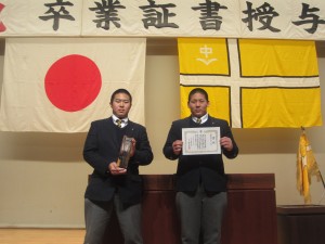③ 大阪私立中学校高等学校連合会長賞 眞野泰地君が受賞しました!