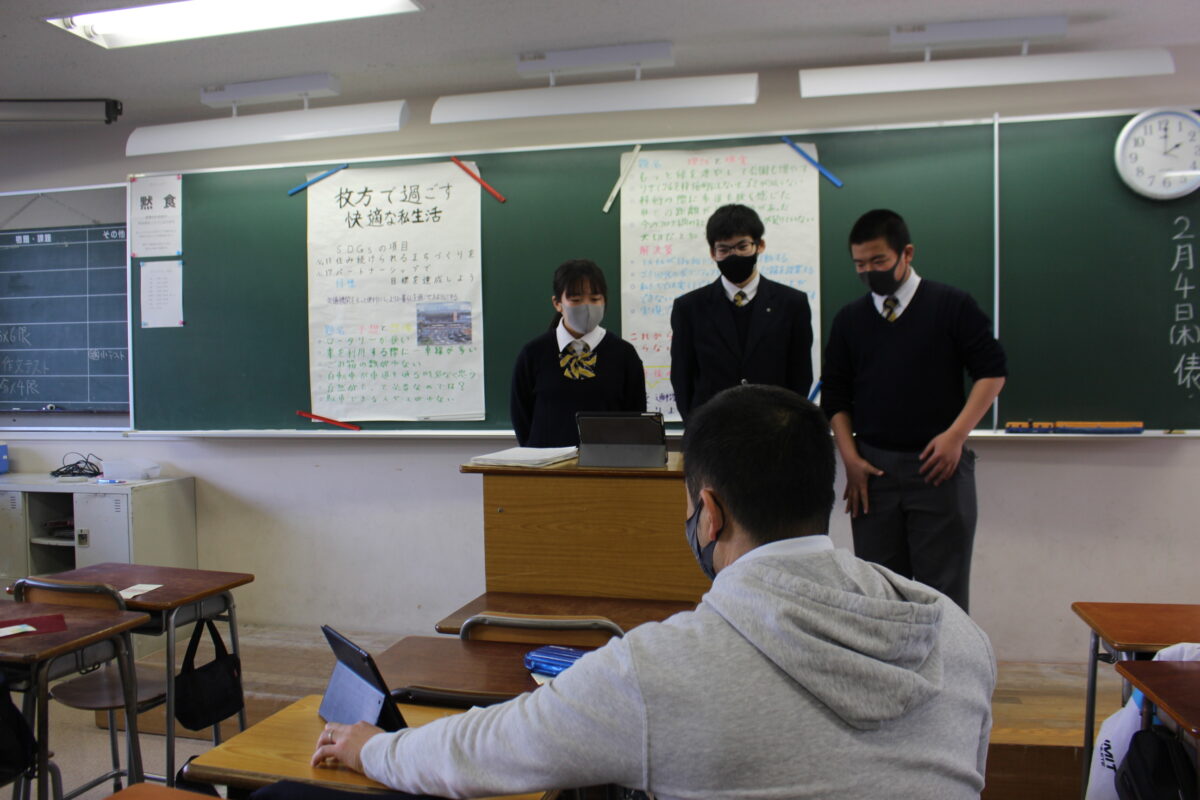 今日は担任や副担任の先生の前で発表の練習をすることになっており、ポスターに書いたものを貼って、プレゼンテーションする班の様子をみることができました。