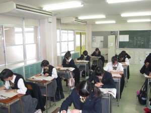 中3では、国語(A,B)、数学(A,B)、理科の3教科について、学力調査の試験を行いました。 国語、数学のAは知識・技能を問う問題、Bは活用に関する問題です。理科については、今年度より学力調査に新たに加えられた科目であり、A,Bが混合した問題になっていました。 また、学習状況調査も同時に実施されました。 みなさん集中して試験終了時間までがんばっていましたので、その様子をお伝えします。なお、この結果は9月中旬に各個人に返却されます。