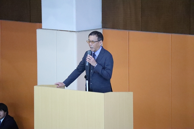続いて行われた始業式では、校長先生よりお話があり、「every」と「all」の使い方の違いを題材に、言葉の意味を丁寧に考えることの大切さについて学ぶ機会となりました。また、生徒指導支援主任から新年度を迎えるにあたってのお話があり、さらに枚方警察署の警察官の方から、自転車利用時の交通ルールや安全意識についてご講話をいただきました。