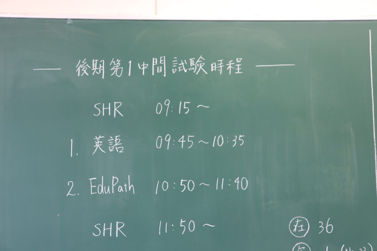 後期第一中間試験 2日目終了!明日は防災訓練も行います。