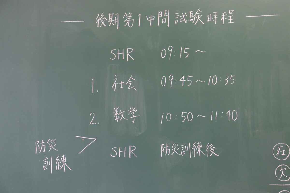 後期第一中間試験 3日目。防災訓練も実施しました。