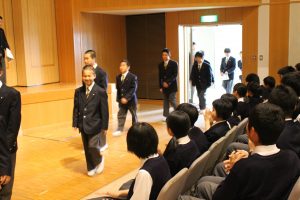 ▲ 校長先生から「仰星にいる素晴らしい先輩方を手本に励んでもらいたい」という歓迎のお話をいただきました。