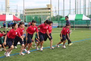 「大玉運び」では、最初にラグビー部員によるデモンストレーションがありました!
