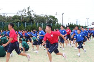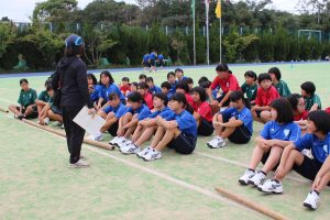 初めに中高共に入場行進の練習、校歌指導や全体の流れの確認があり、その後、各種目別の練習に移りました。