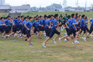 朝早くより、高校のラグビー部や女子バレボール部が準備をしました。 おかげで万全の準備を整えることができました。開会式での校長先生の激励の一言に、生徒達から拍手が沸き起こりました。