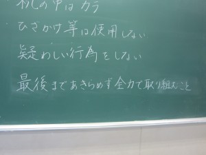 明日で後期第二中間試験は終了です。 どのクラスの黒板にも、「最後まであきらめず全力で取り組むこと!」と書かれています。 みなさんの将来を考えての思いやりですね! みなさん、ラストスパートをかけてがんばってください!