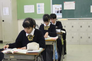 今日は、2年C組の国語の授業で、試験範囲に相当する問題集の解答仕上げと、古文暗唱を行いました。