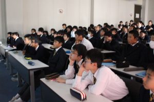 生徒が集団としての行動を秩序正しく、かつ安全で迅速に行動できるようにすることは、将来社会の一員として活動するときにも役立つものです。また、これから研修旅行や、学校外での活動にも規律ある行動が求められます。その集団行動の良いお手本として「日本体育大学」は大変有名です。今日は2年生(男女)全員で、その日本体育大学の集団行動の映像を視聴しました。みんな驚き、大変感動していましたが、これからの授業に向けてよいイメージができたと思います。