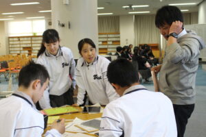 校内オリエンテーリングでは、校内の各施設をオリエンテーリングしながら覚えていきます。指定されたグループでうまくコミュニケーションをとりながら、オリエンテーションリーダーが準備してくれたゲームなどを楽しんでいました。