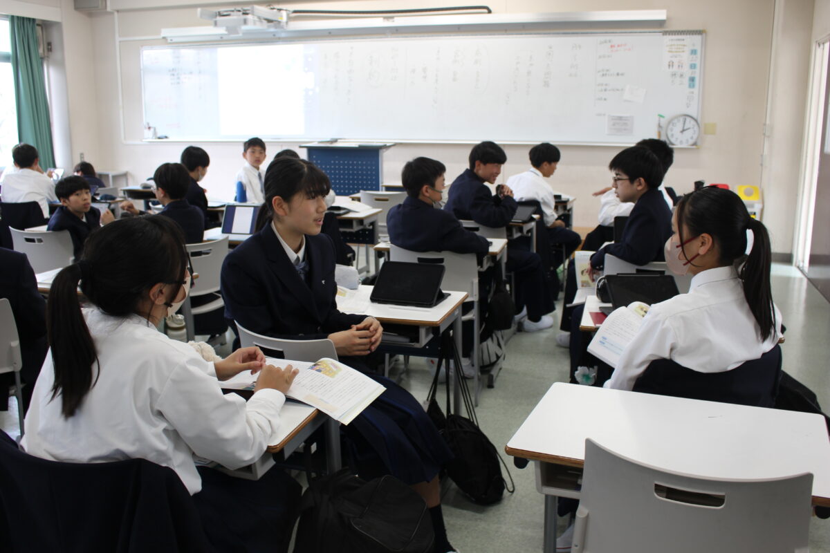 本日、1年生は道徳の授業において、公共の精神やルールを守ることの大切さについて学び、考えを深めました。