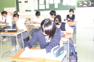 生徒同士でわからないところを教えあう姿も見られ、それぞれが試験に向けて頑張っている姿勢が見られました。