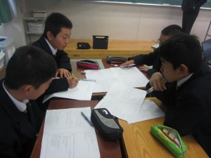 辞書を引いたり、パソコンで調べたり、各班ごとに協力して調べものをしている様子が見られました。