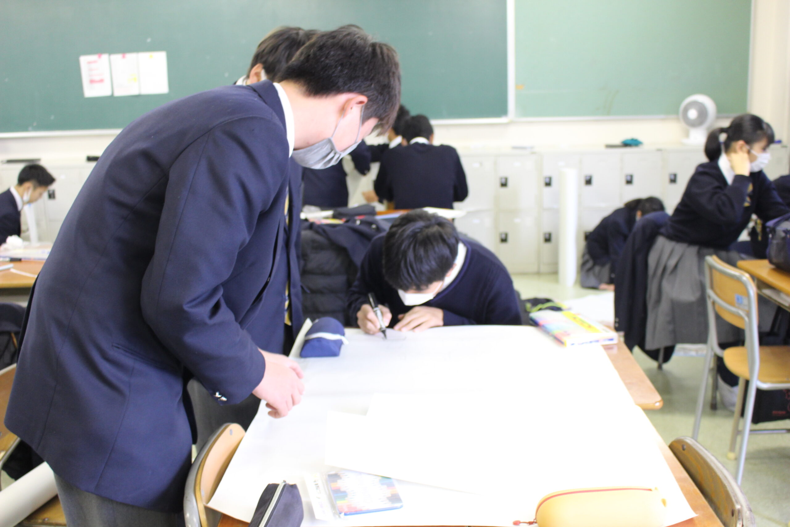 2年生総合学習「枚方地域発展プロジェクト」ポスターセッション準備中