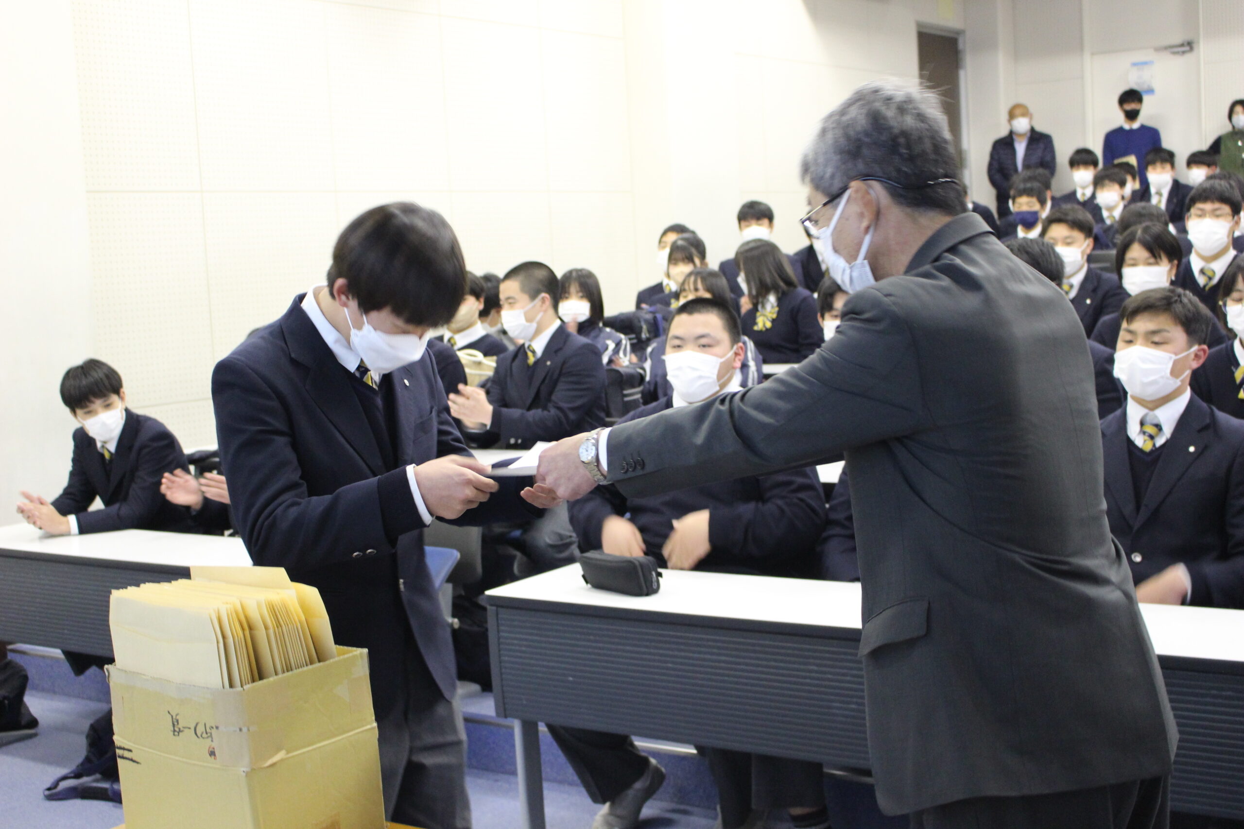 3年生、仰星高校推薦入学試験の「合格発表」を行いました。