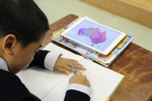 今日の1年C組の「地理」の授業では、地図に載っている地域をグーグルアースで検索し、エジプトの古代遺跡の大きさや地形などの「謎」をみんなで考えていました。「百聞は一見にしかず」というように、生徒達の理解が進んでいたように感じました。ipadを授業の途中で各自手際よく資料を閲覧するなど、有効活用をしている姿も見られました。