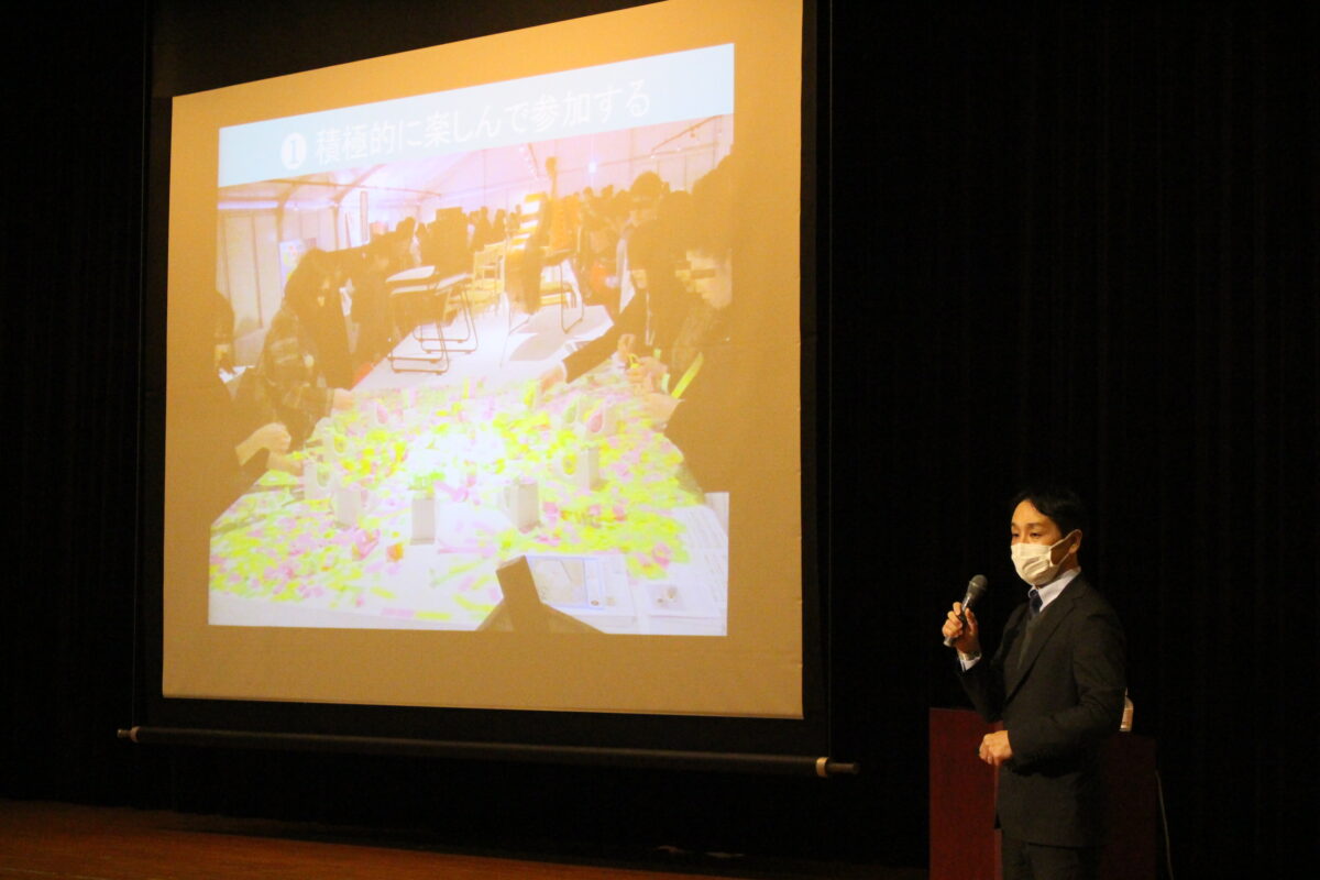 この1年間、1年生は「基礎探究」に取り組んできました。本日は基礎探究のまとめの時間として、2022年にイグ・ノーベル賞を受賞された松崎 元先生(千葉工業大学 創造工学研究科 デザイン科学 教授)による探究講演会を行いました。「無意識と身の回りのデザイン」というテーマで、普段身近にある「なぜ?」や製品の発明についてお話いただきました。