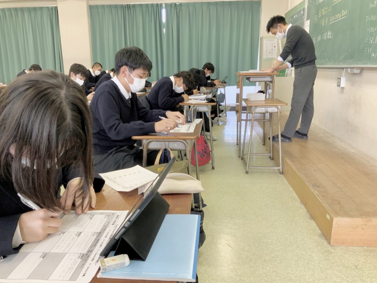 本日、1、2年生は後期第二中間試験に向けての学習計画を立てました。試験範囲を確認して、これからの学習計画を立てていました。これまでの結果を振り返って試験までの学習を計画している生徒も多く、「自己探求ノート」を自分のために活用している姿も見られます。記入後は試験勉強に取り組む姿も見られ、少しずつ試験に向けての意識が高まってきているように感じます。