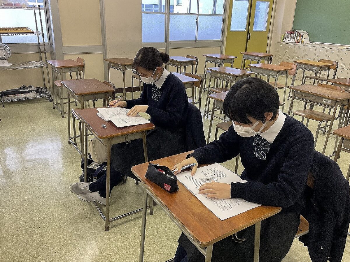 12月20日(月)から27日(月)の期間で冬期特別講座が行われています。1・2年生は時間割が組まれており、問題演習や復習、新しい学習単元など、各教科の講座が展開されています。受験勉強の仕上げとなる3年生は各自の必要な講座を選択して受講しています。冬休みが終わると受験も目前。この講座を乗り越えるとみんな、一層引き締まった受験生の表情になると言われています。放課後の教室でも暗くなるまで自習に取り組んでいるが見られます。