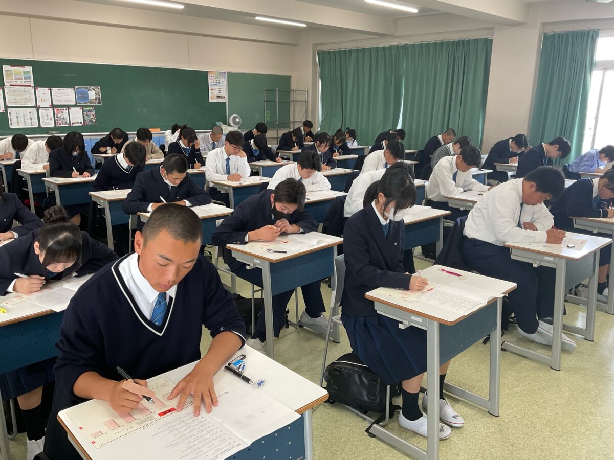 その後、英語・国語・数学の3教科の試験を実施しました。講話を受けたことで、より一層意欲を高め、集中して問題に取り組む姿が印象的でした。