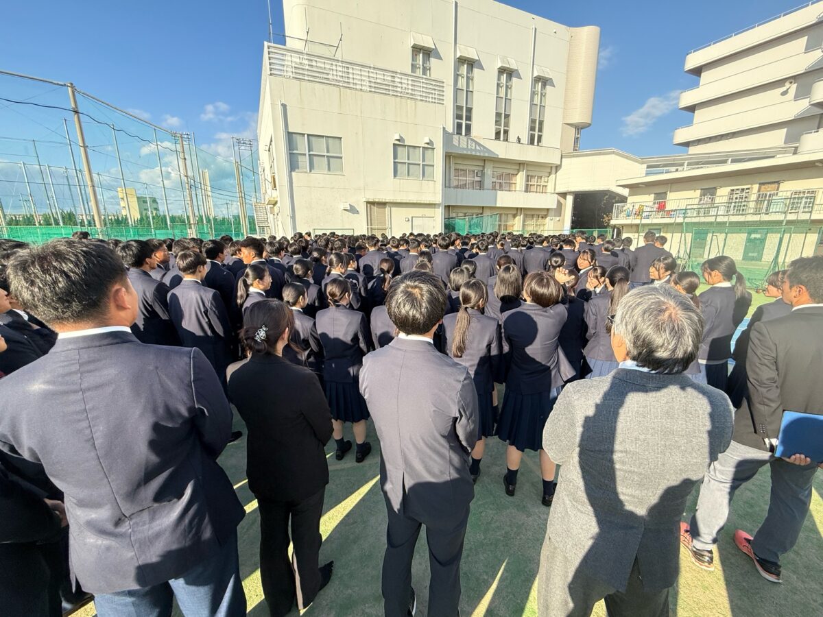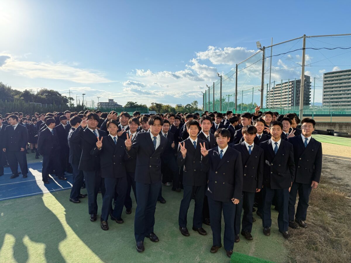 試験の後は、卒業アルバムの学年集合写真の撮影が行われました。