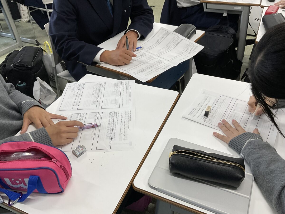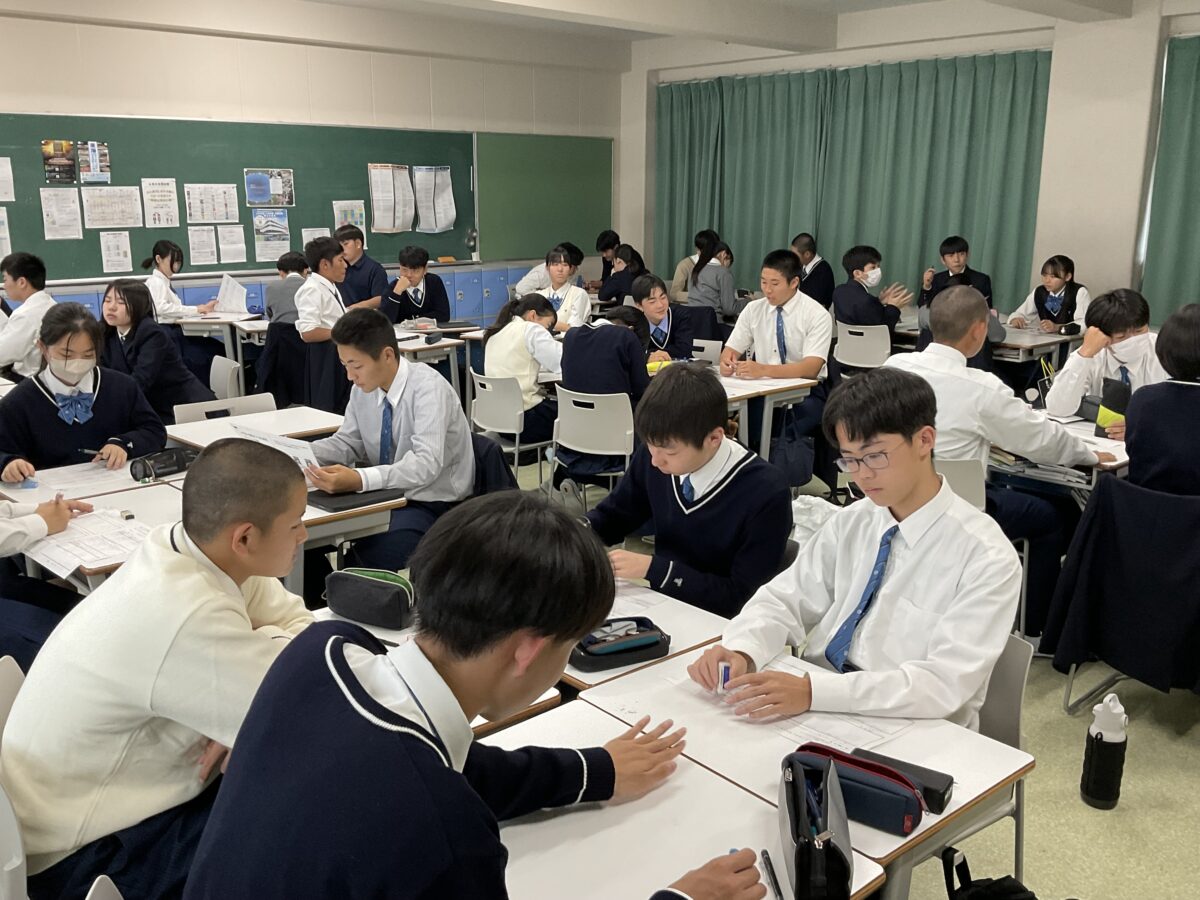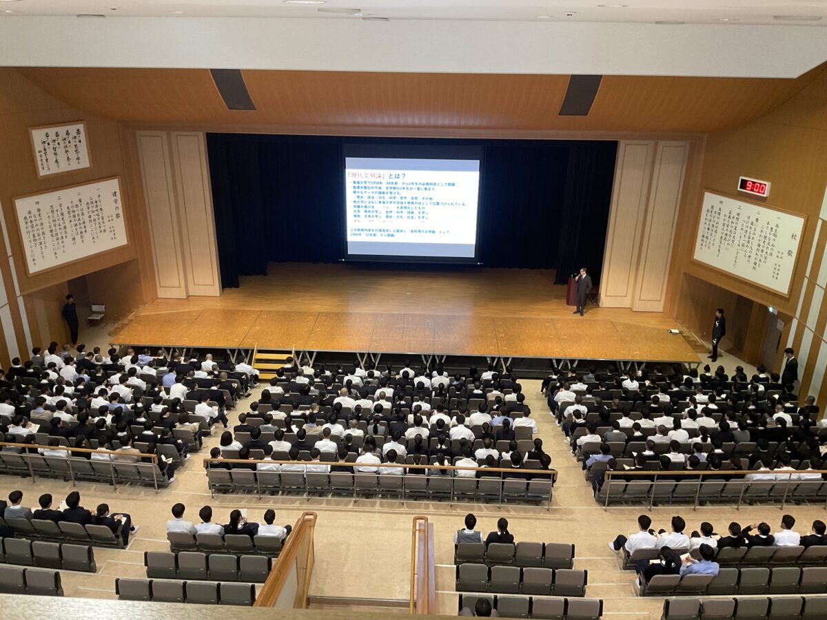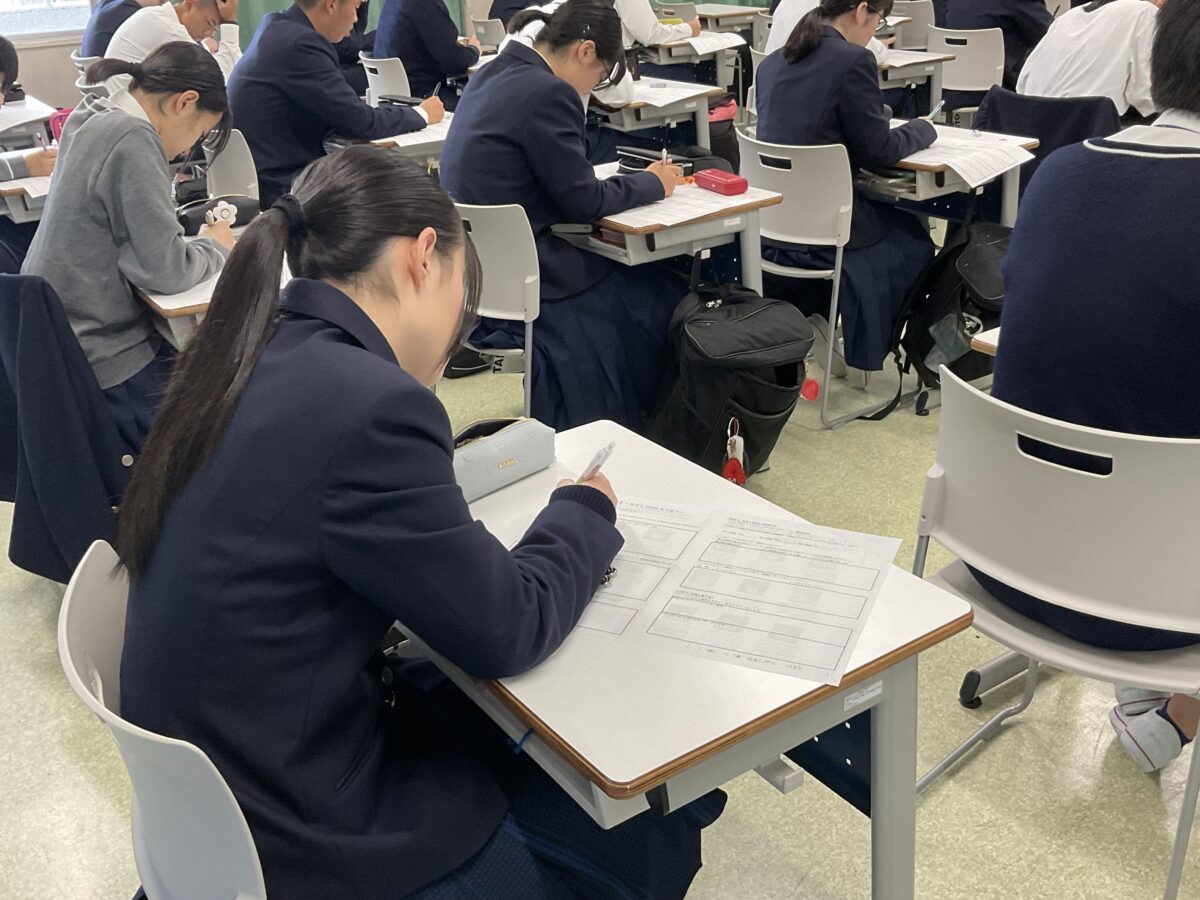 高校1年生は、1・2限の時間を使って講堂で活動を行いました。
