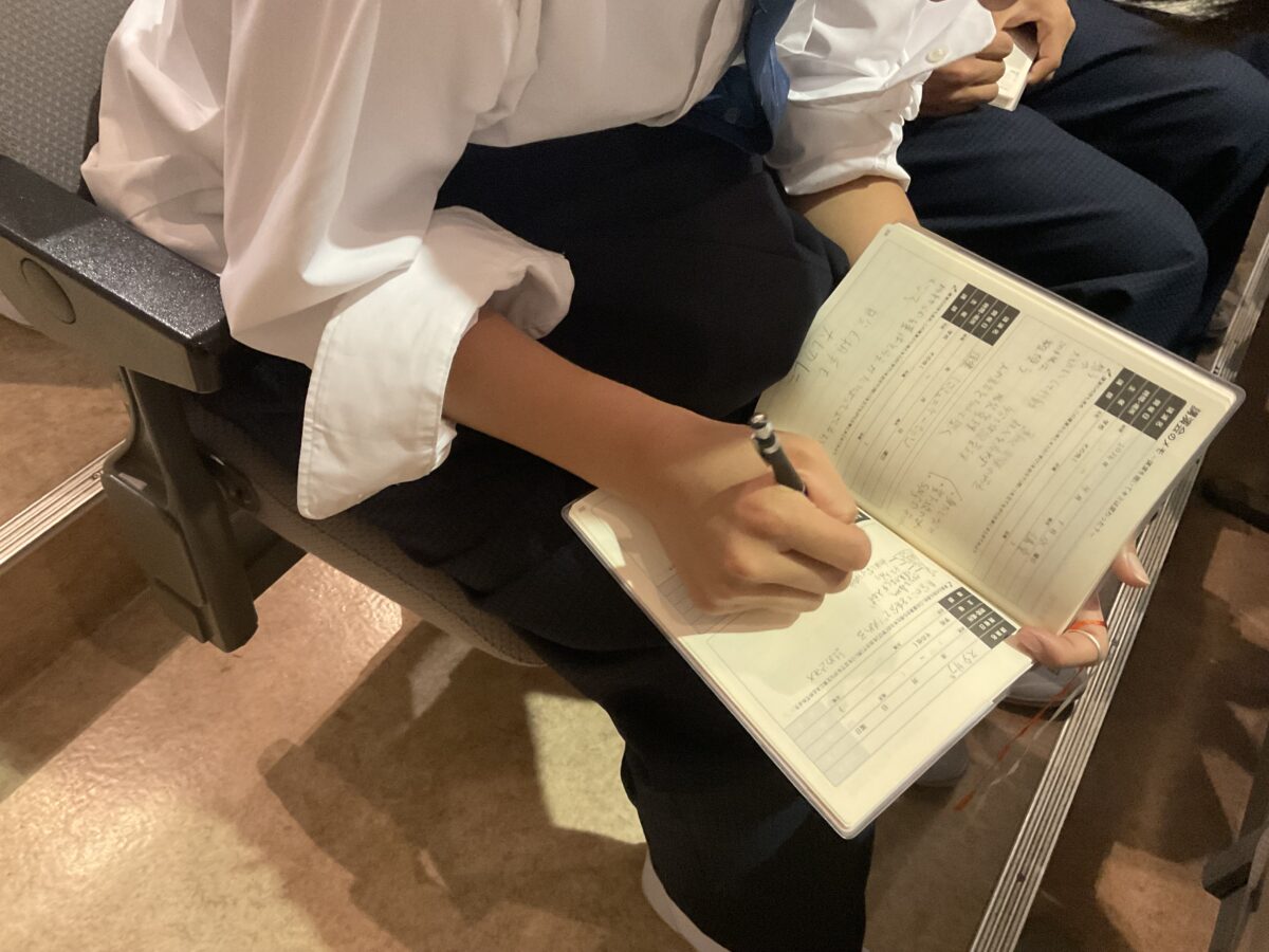 生徒たちは真剣に耳を傾けながら、熱心にメモを取り、講話に臨んでいました。