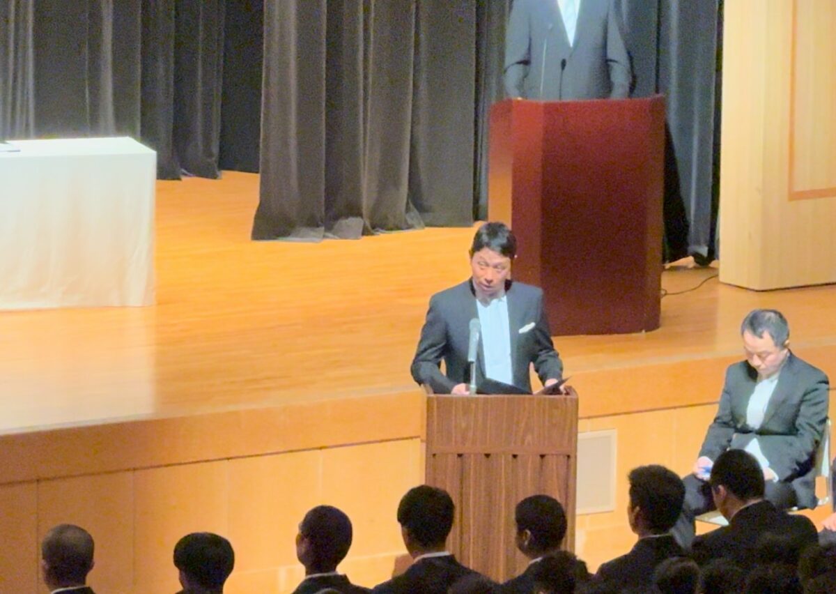 新入生は、元気な声で入学許可の返事をし、代表生徒から「真の文武両道を目指します」と宣誓が読み上げられました。きっとこれから始まる3年間に決意も新たにしたところだと思います。明日から本格的に学校生活が始まります。今日、入学式で心に誓った思いを達成できるように、初日から充実した学校生活を送ることが出来るように努力をしていってほしいと思います。