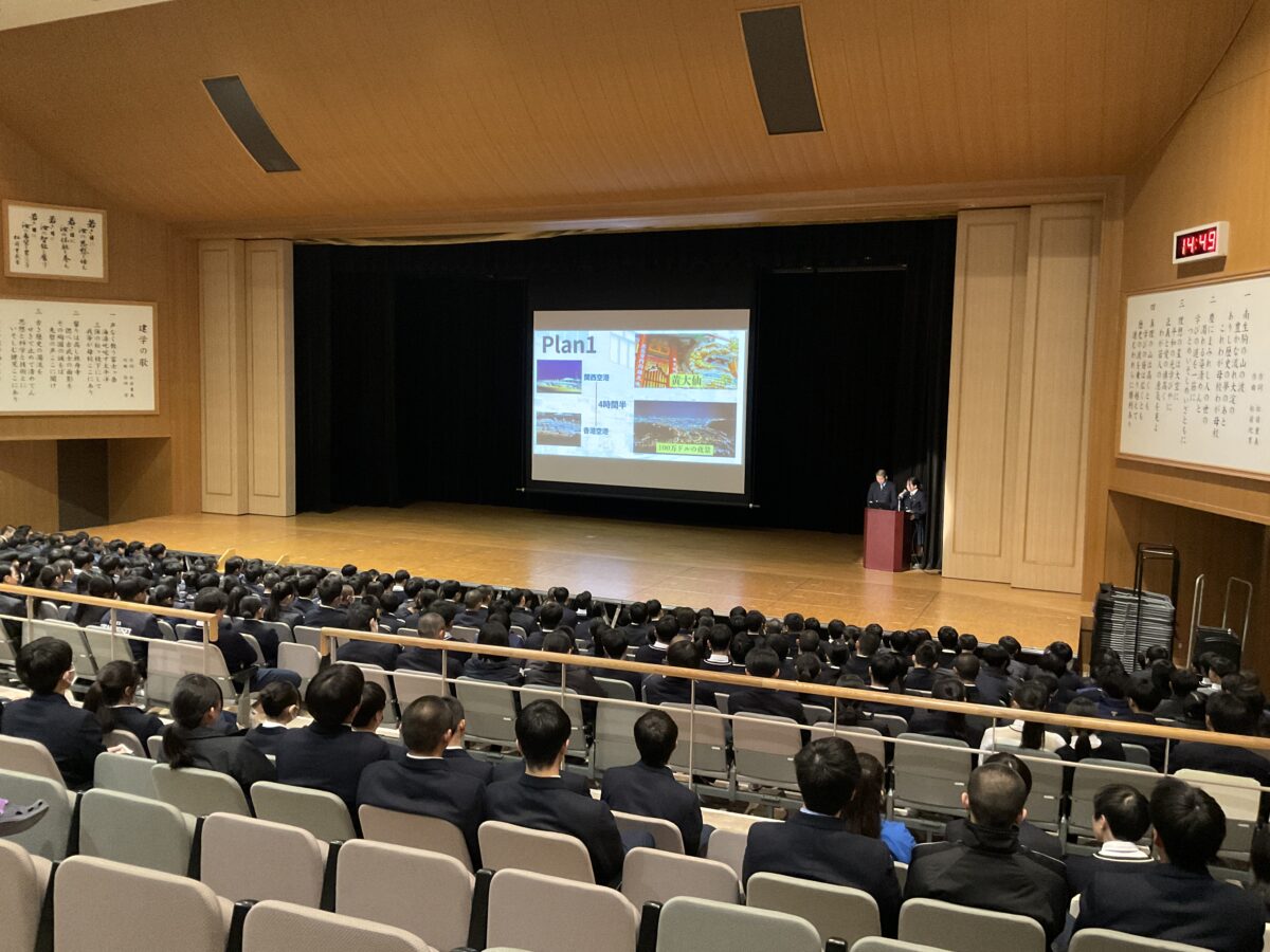本日、1年生は来年度実施される研修旅行に向けたLHRを行いました。全体の流れや目的を確認し、行き先の候補についての説明がありました。