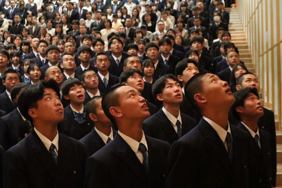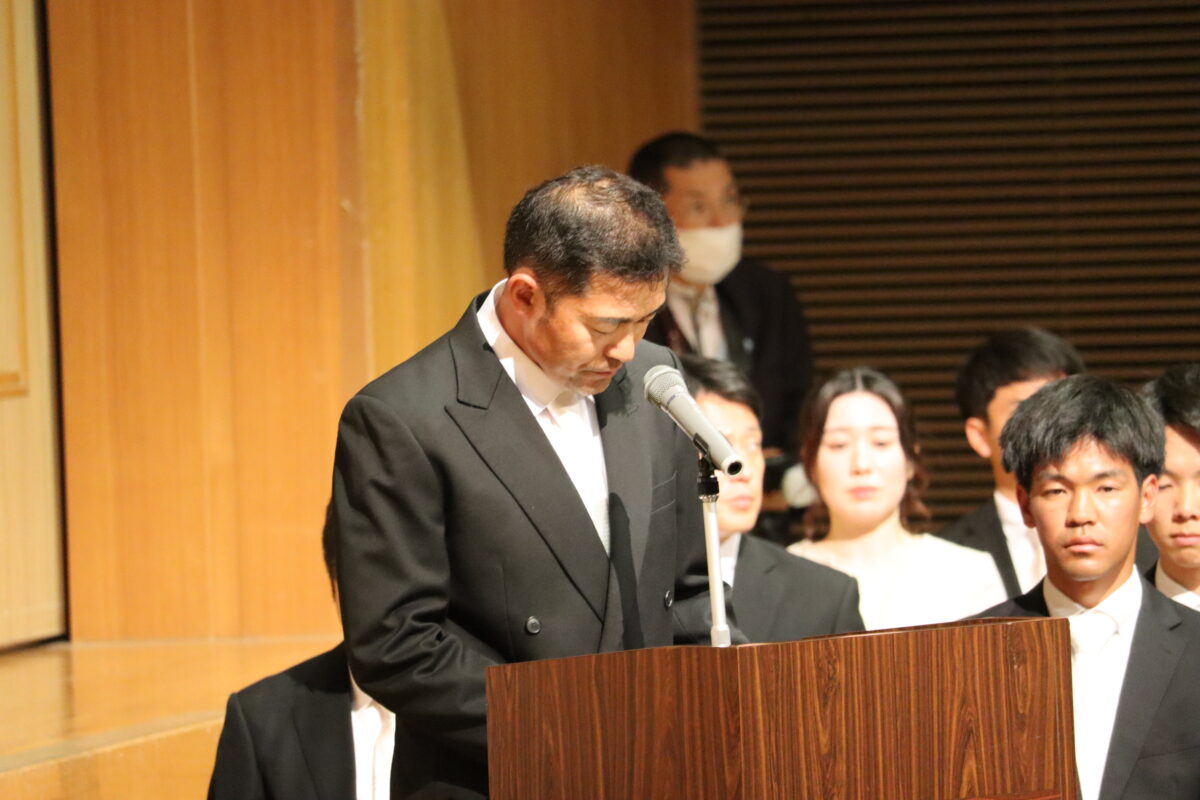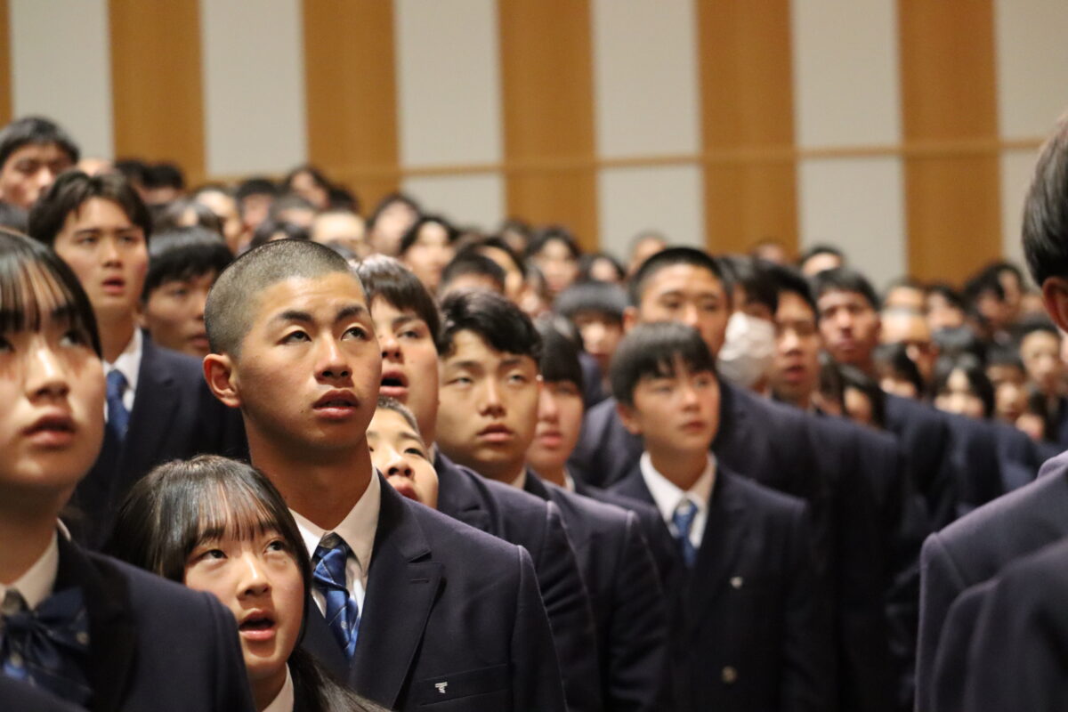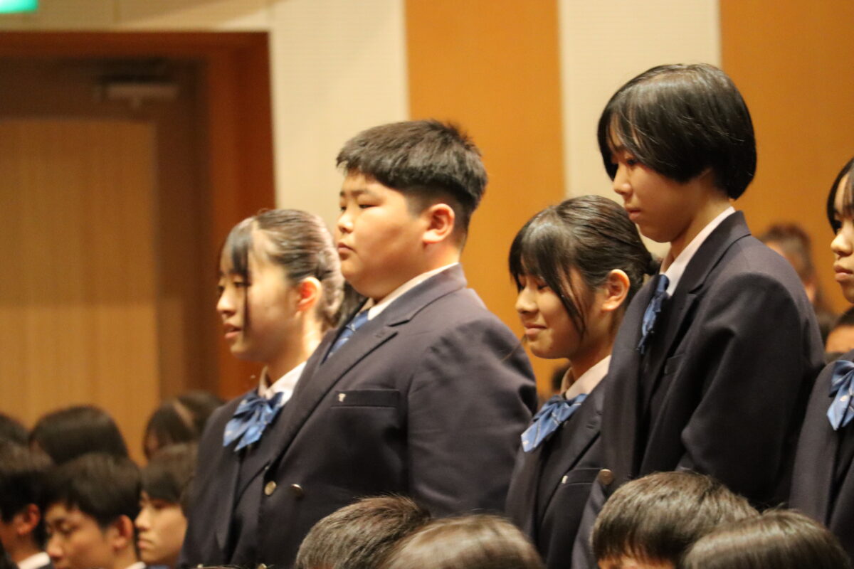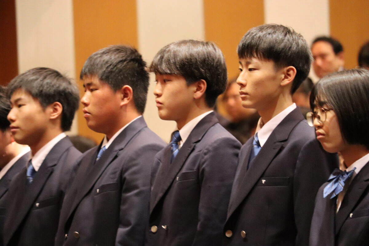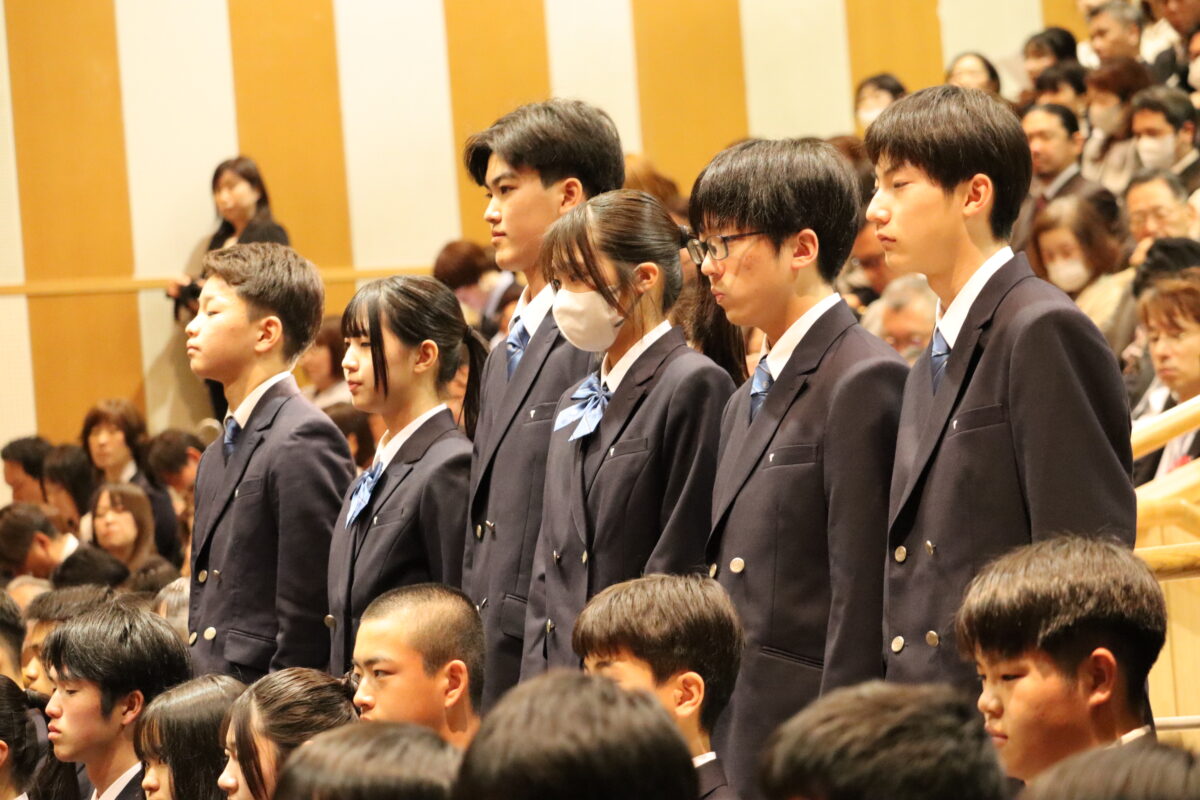 今年度は358名の新入生を迎え、会場は新たな一歩を踏み出す生徒たちの希望に満ちた空気に包まれていました。入学許可の場面では、各クラス担任の呼名に対し、一人ひとりがしっかりと返事をして起立する姿が見られ、これからの活躍への期待が一層高まりました。