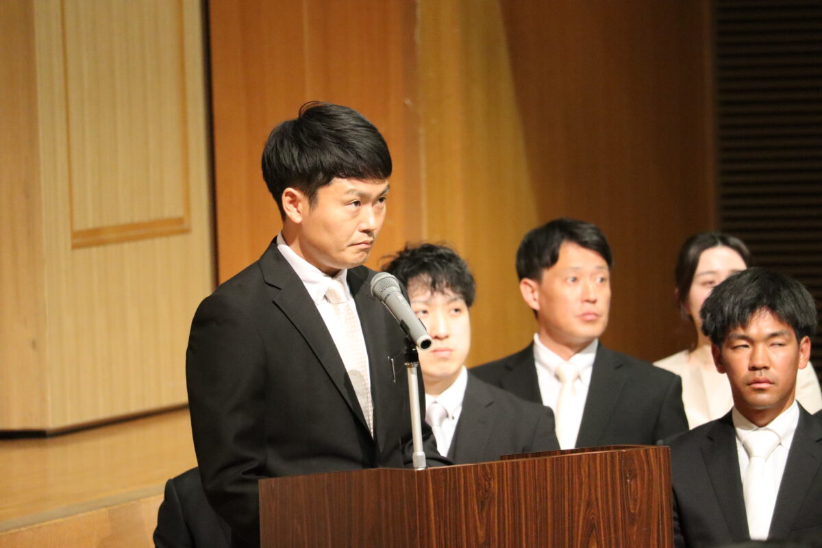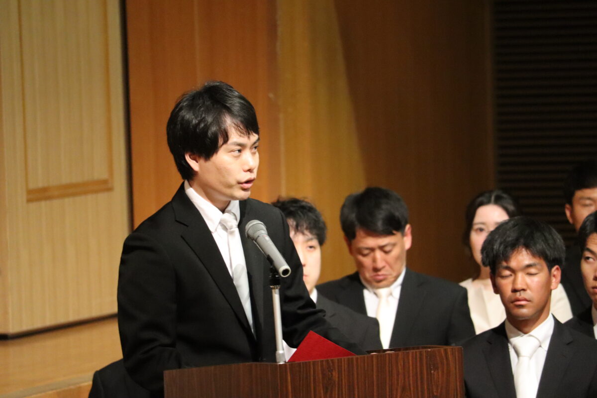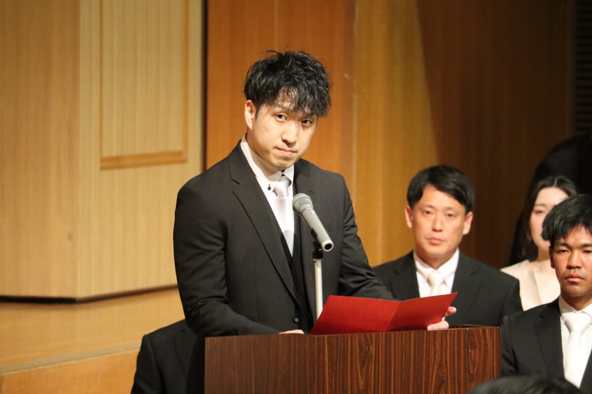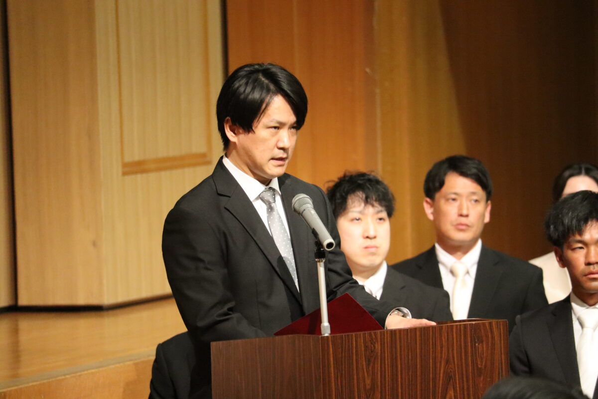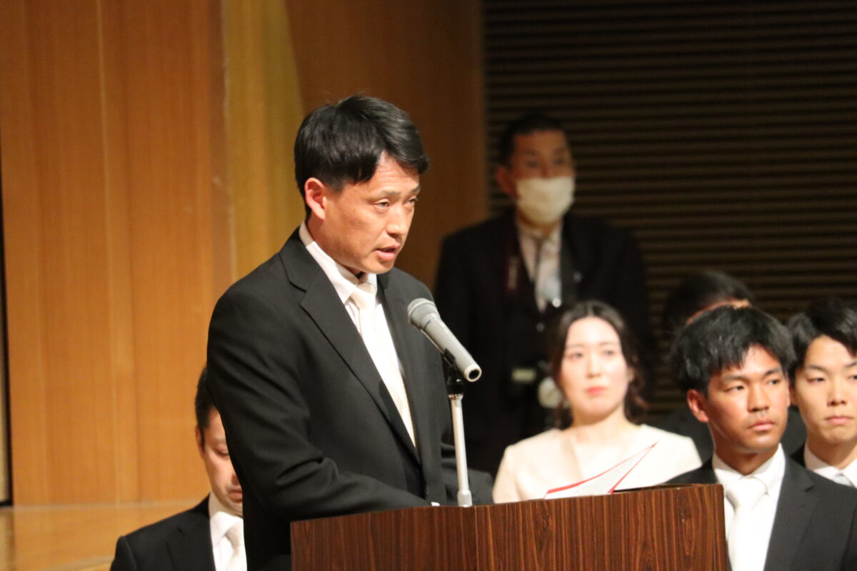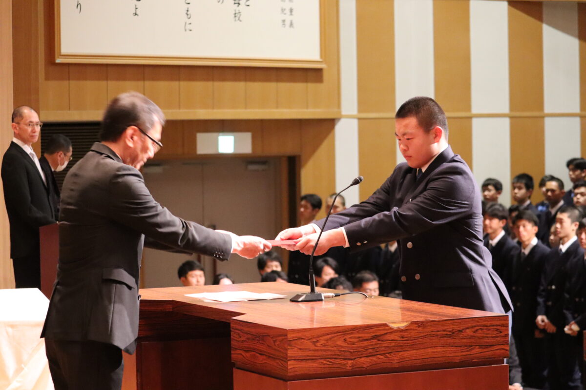 今年度は358名の新入生を迎え、会場は新たな一歩を踏み出す生徒たちの希望に満ちた空気に包まれていました。入学許可の場面では、各クラス担任の呼名に対し、一人ひとりがしっかりと返事をして起立する姿が見られ、これからの活躍への期待が一層高まりました。