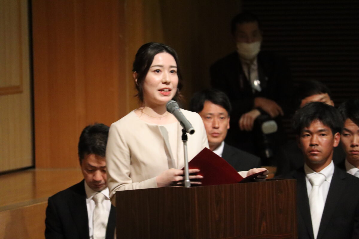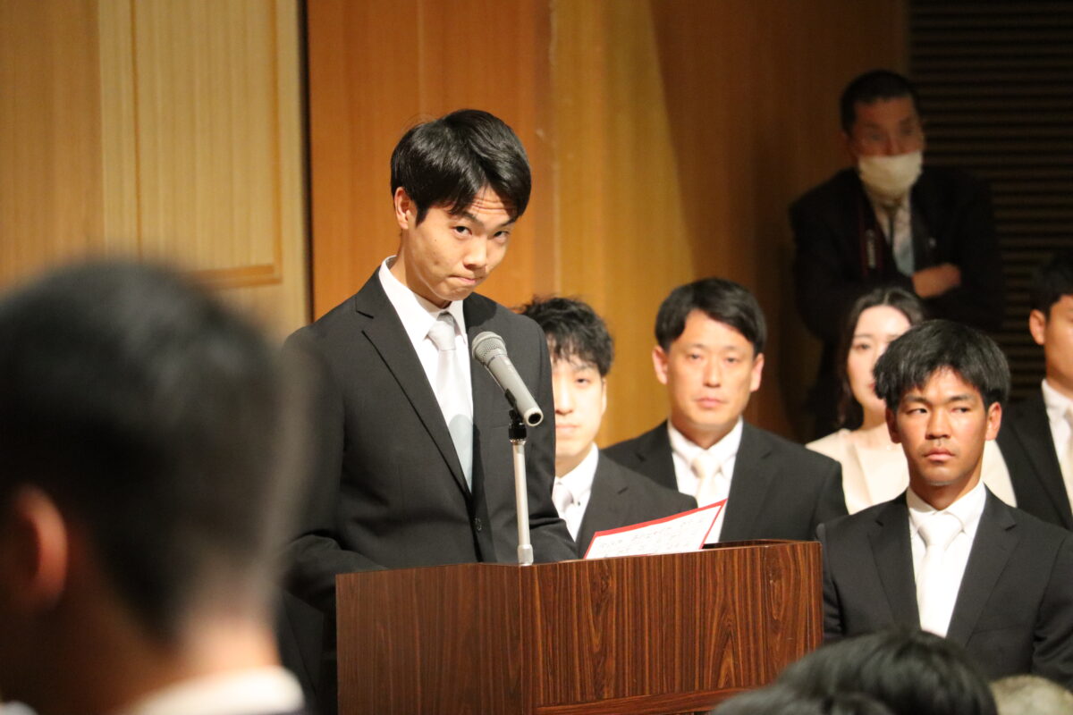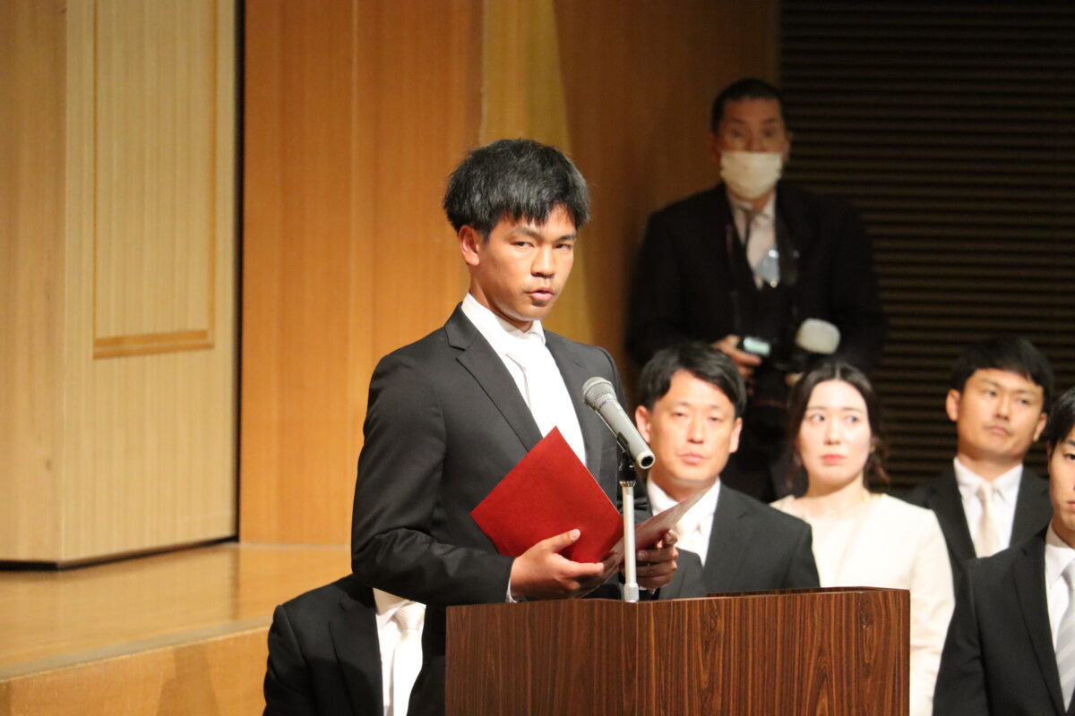 入学生宣誓では、生徒代表が力強くはっきりした声で誓いの言葉を述べました。 明日からはいよいよ学校生活が本格的に始まります。本日胸に刻んだ思いを大切にしながら、それぞれが充実した日々を積み重ねていってくれることを願っています。体調管理にも気を配り、元気に学校生活を送ってくださいね。
