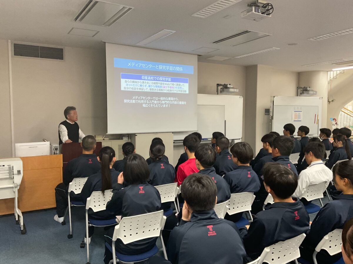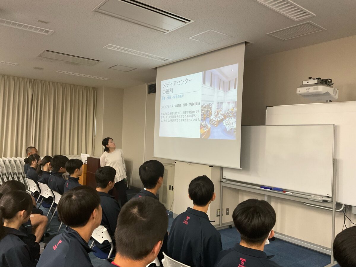 また、健康診断と並行して「メディアセンターガイダンス」も行いました。メディアセンター(図書室)では、本の借り方や利用時のルールについて説明を受け、生徒たちは実際に一人一冊本を選び、借りて帰りました。これからの学習や読書活動の拠点となる場所として、理解を深める良い機会となりました。